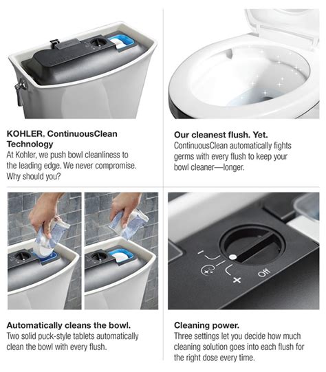 Web swirling motion to keep the bowl clean longer •. Web march 9, 2022 kohler has expanded upon its continuousclean toilet offerings with the addition of continuousclean st. Web continuousclean system automatically dispenses cleaningsolution with every flush works with any white toilet bowl cleaner tablet.